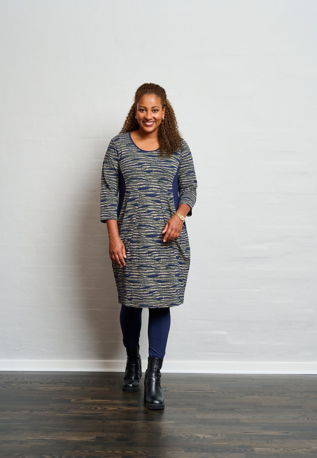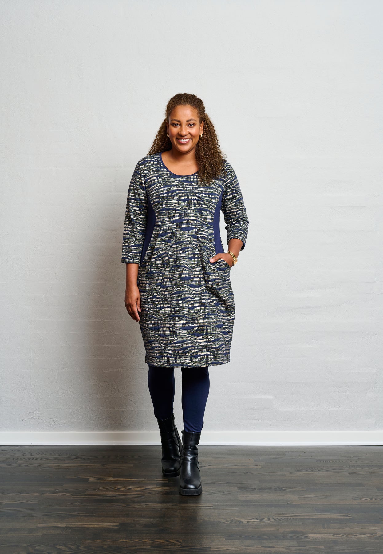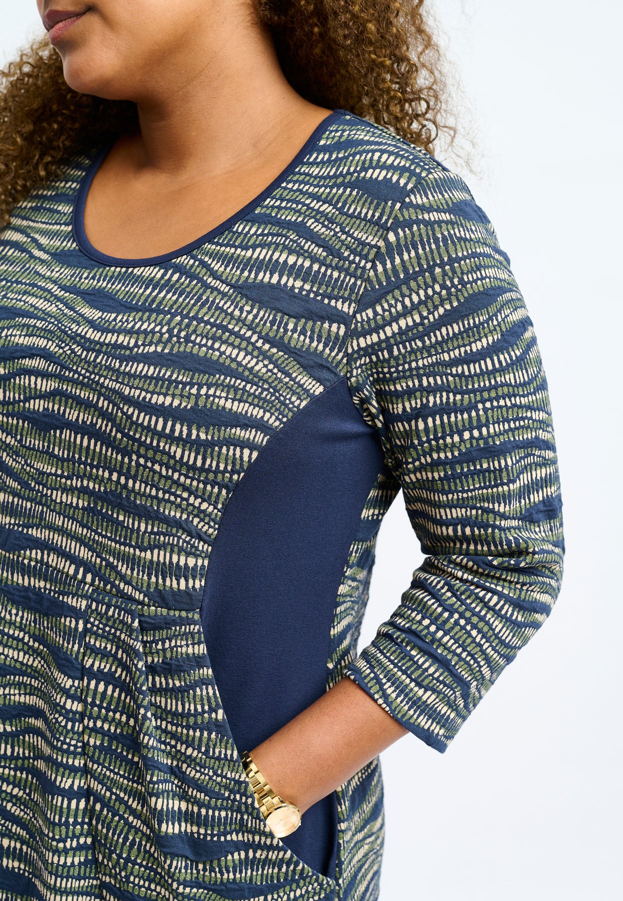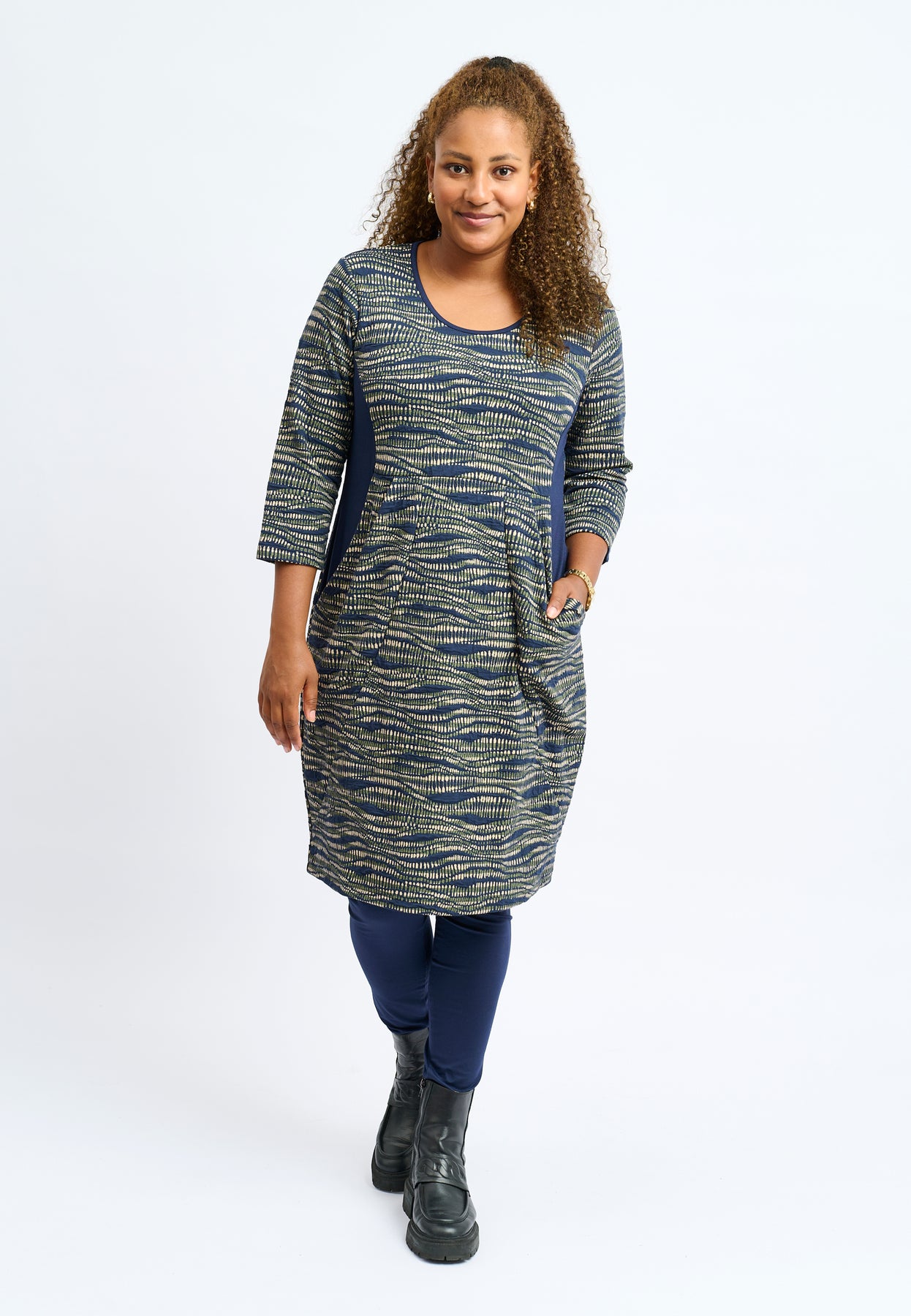 Regular price 999.00 DKK Sale price 299.70 DKK Save 70%This beautiful dress from Pont Neuf combines modern design with an excellent fit. The dress features a subtle texture that adds depth and character to your outfit. It is made from a soft, stretchy fabric that ensures great freedom of movement throughout the day. With three-quarter sleeves and a round neckline, the dress offers a relaxed yet stylish look. The practical side pockets add both functionality and a casual vibe.