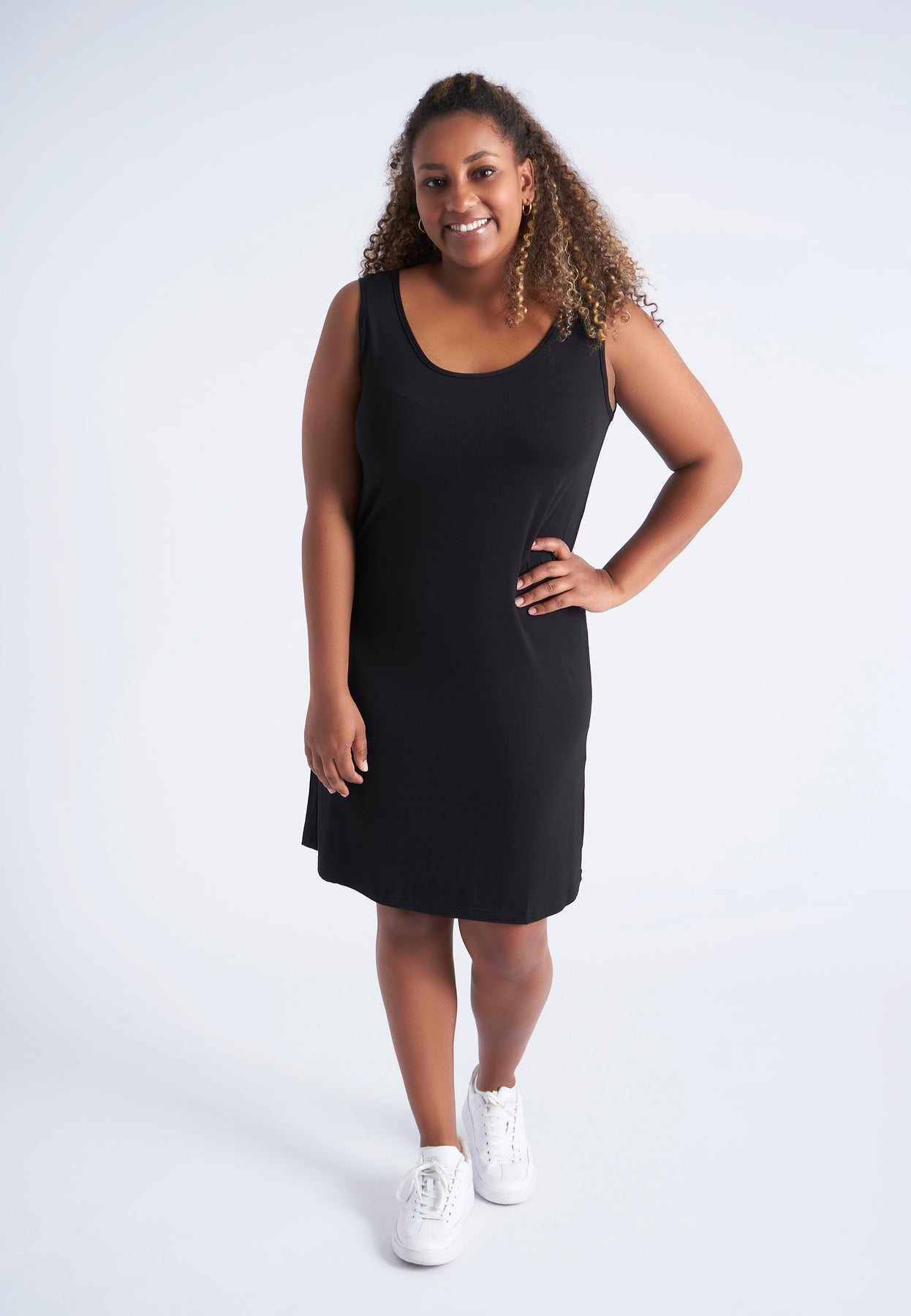 Regular price 399.00 DKK Sale price 279.30 DKK Save 30%Beautiful, sleeveless dress with a round neckline. The dress is designed as a solid-colored, knee-length tank top, which provides plenty of styling options. The style is made in an amazing bamboo quality with stretch, and it has a shaped fit.