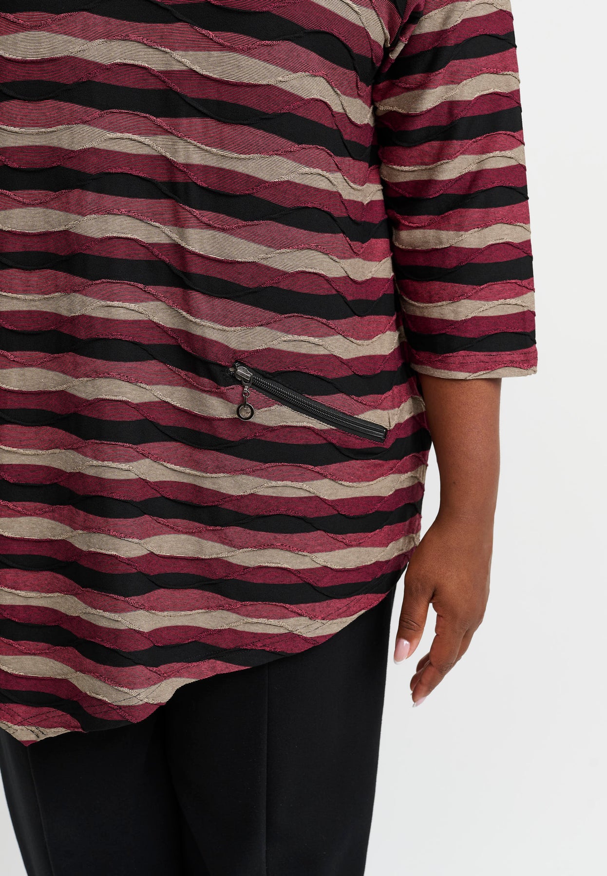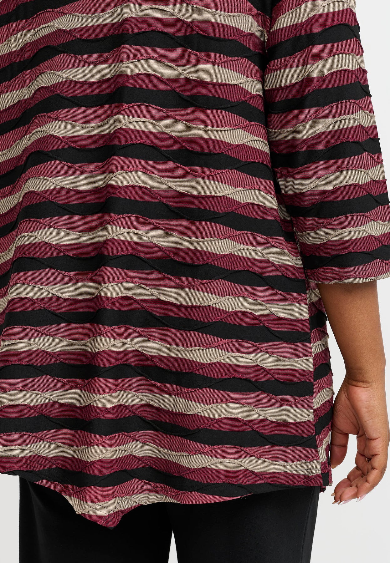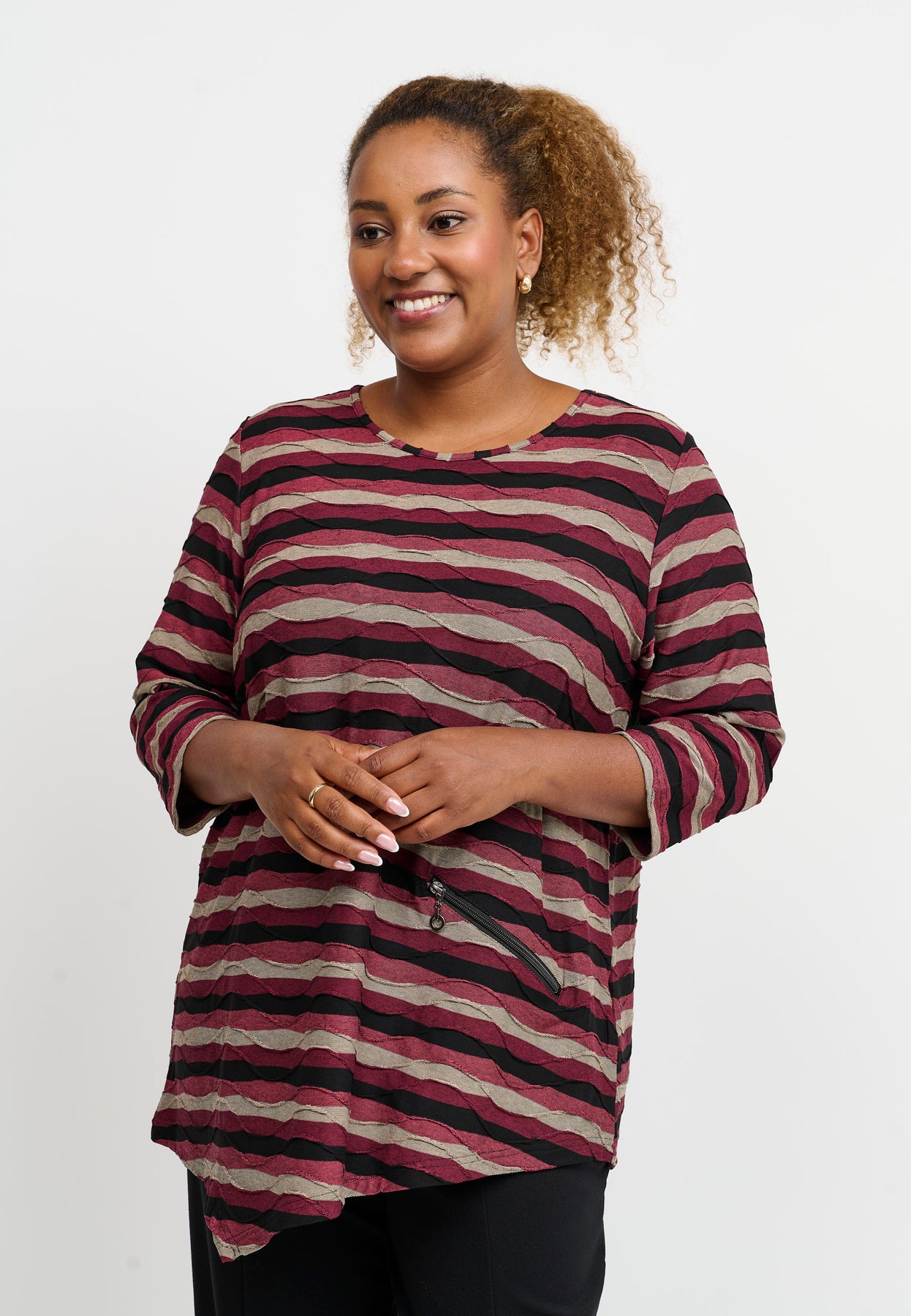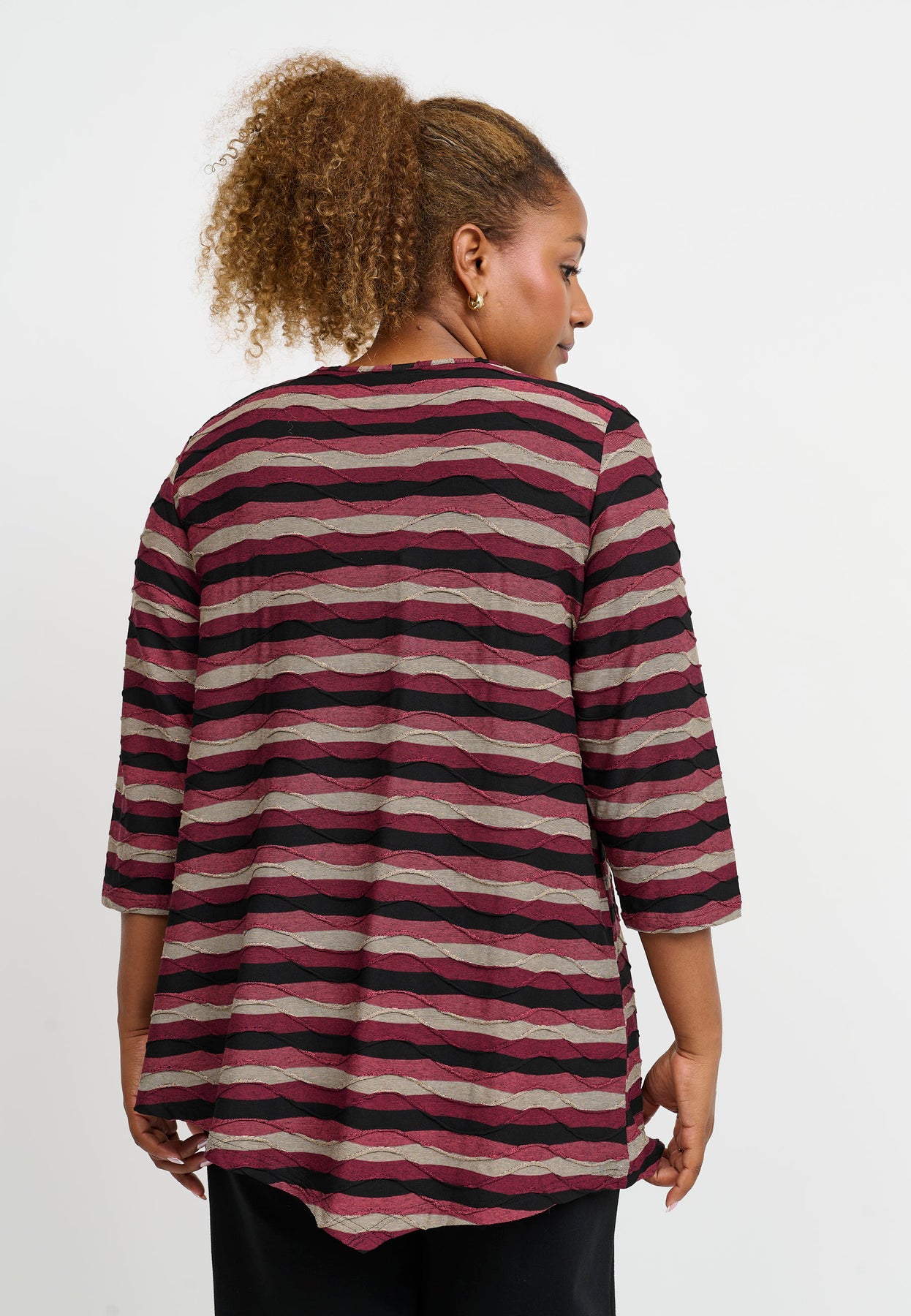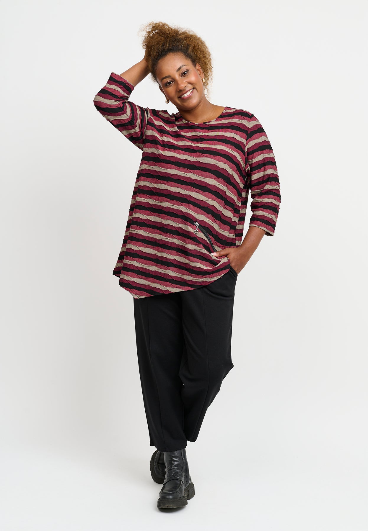 A relaxed top with beautiful stripes in warm tones and a slightly asymmetric cut. The soft viscose with stretch allows for freedom of movement and all-day comfort. The casual fit is loose and longer at the back, giving it a modern and flattering silhouette.