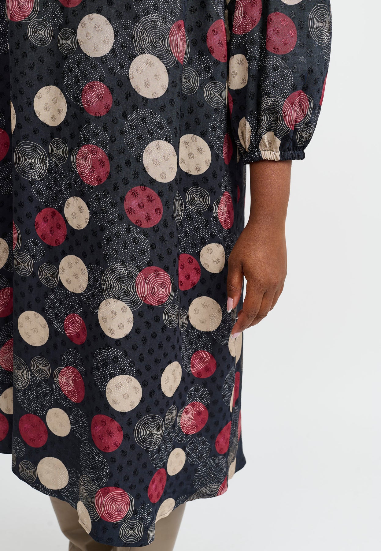 The style is called PNDena and is made of 100% viscose. The fit is 'A-Shape', and the length in size M is 105 cm at the back.