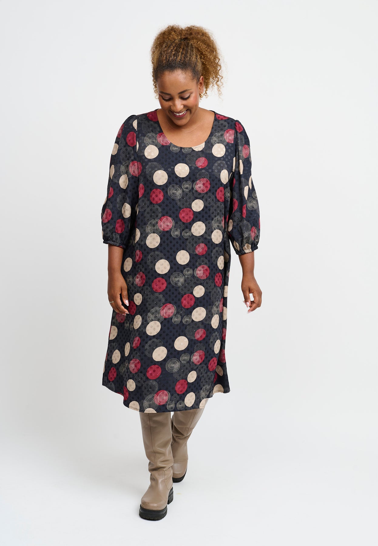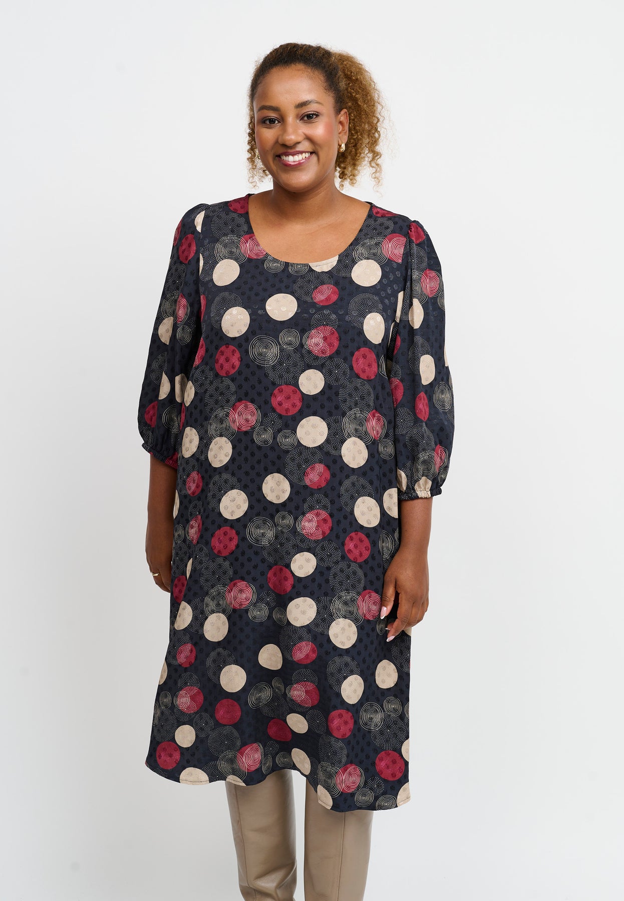 Regular price 899.00 DKKA light and airy dress with a feminine A-line silhouette and a playful, colourful print. Made from 100% viscose, it drapes beautifully and feels soft against the skin. The simple design with a round neckline and long sleeves makes it easy to style for various occasions – from relaxed days to casual gatherings.