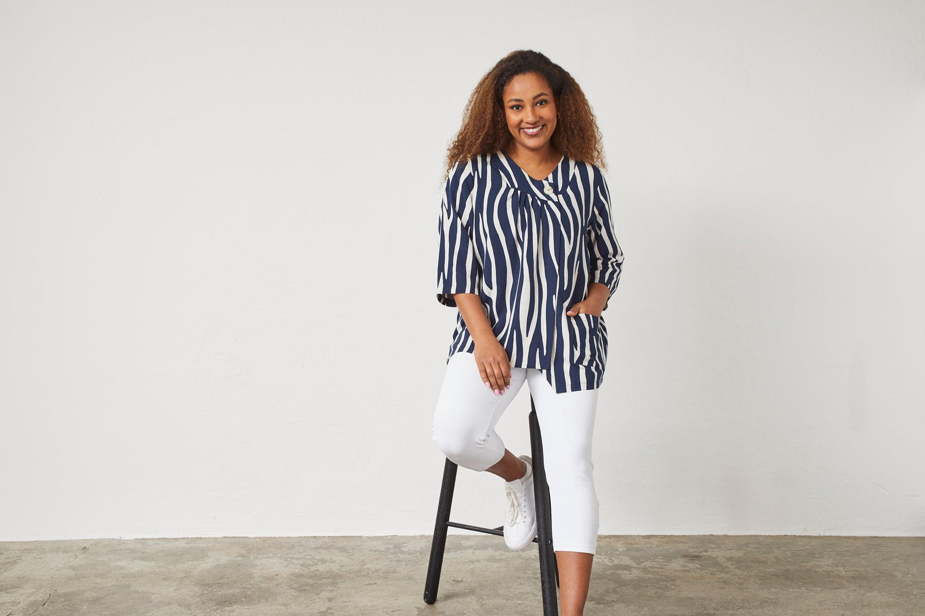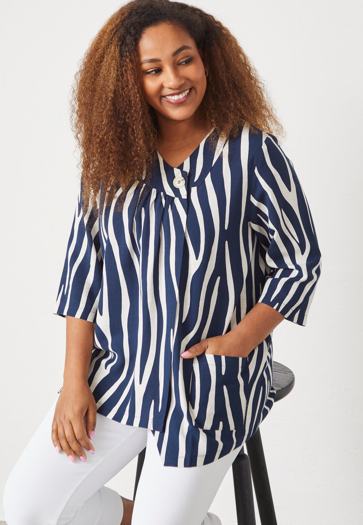 Regular price 799.00 DKK Sale price 559.30 DKK Save 30%This blouse blends comfort and character with its straight cut and elegant V-neck. The relaxed fit creates a contemporary silhouette, while the striped design adds edge and personality. The sleeves have a flattering length, and the fabric drapes softly – a style that feels just as good as it looks.