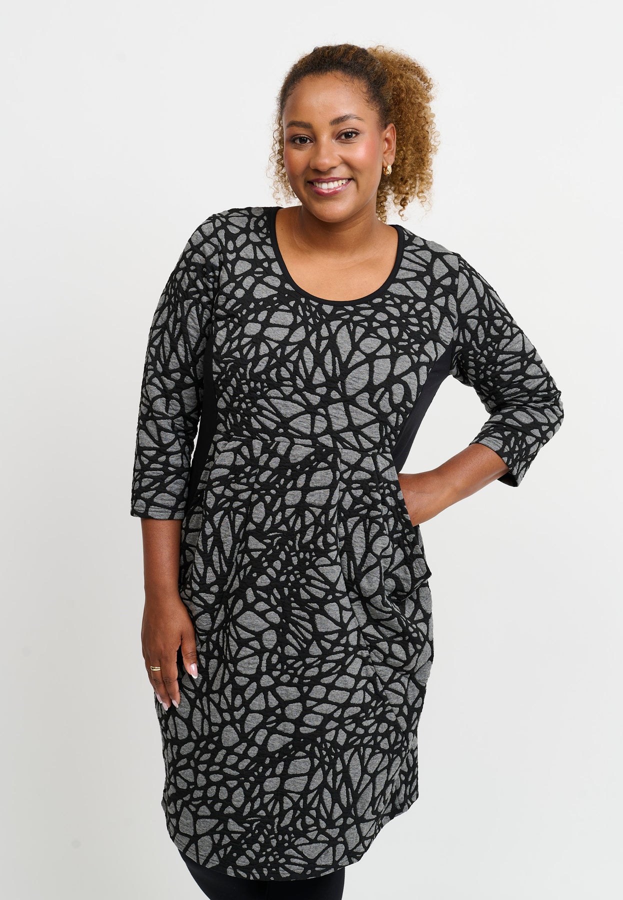 Regular price 899.00 DKK Sale price 449.50 DKK Save 50%A stylish and versatile dress with a balloon effect and a dynamic graphic print. The gently rounded silhouette gives it a feminine look and all-day comfort, while the stretchy viscose blend ensures a great and flexible fit. Featuring a round neckline and long sleeves, it's ideal for both casual wear and more special occasions.