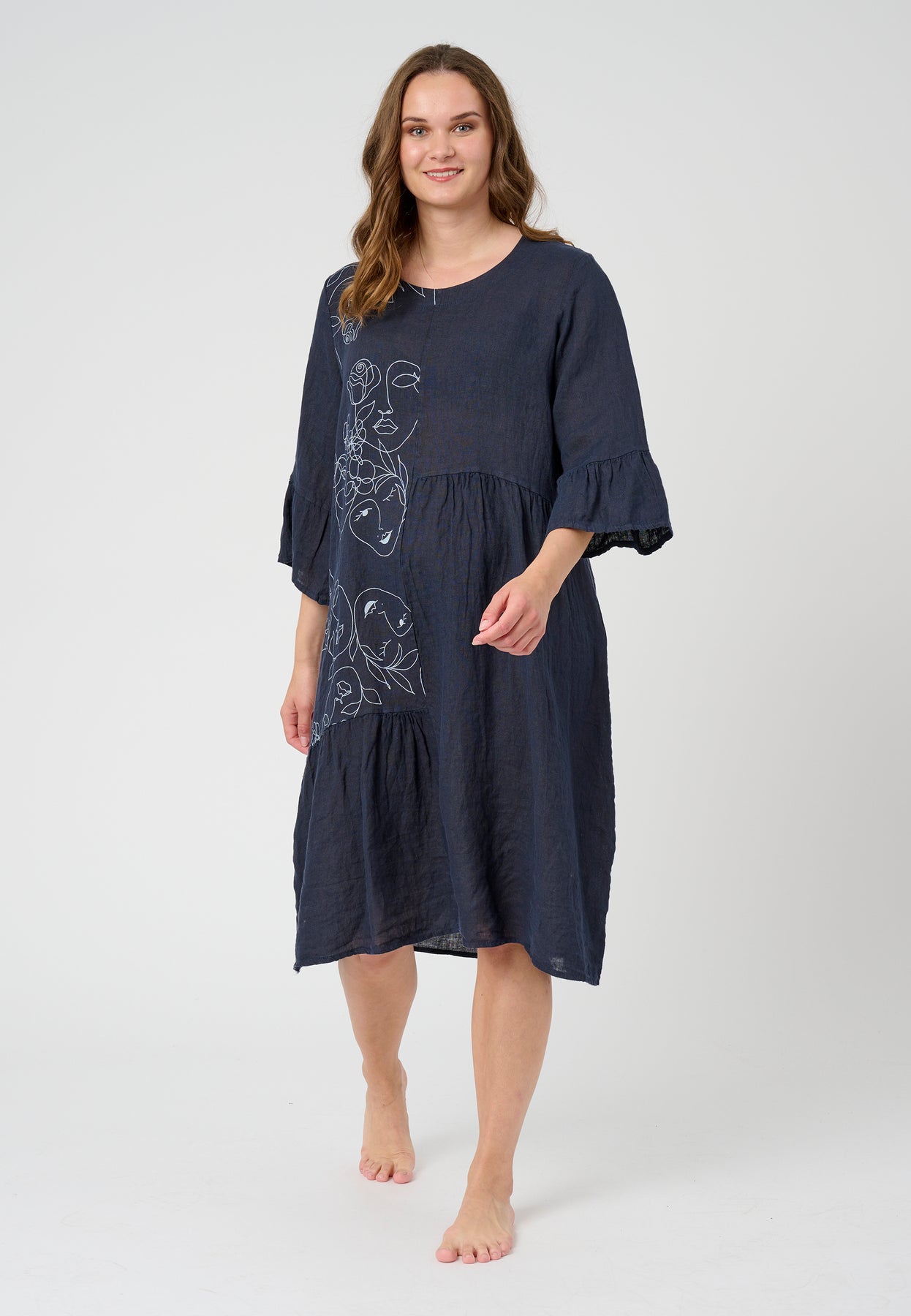 Regular price 899.00 DKK Sale price 300.00 DKK Save 67%Beautiful dress with ¾-length sleeves and a classic, round neckline. It has a stylish, two-tone design and a super cool print on the front. The dress is made from a lovely and breathable linen quality, and it has a feminine and flattering A-shape.