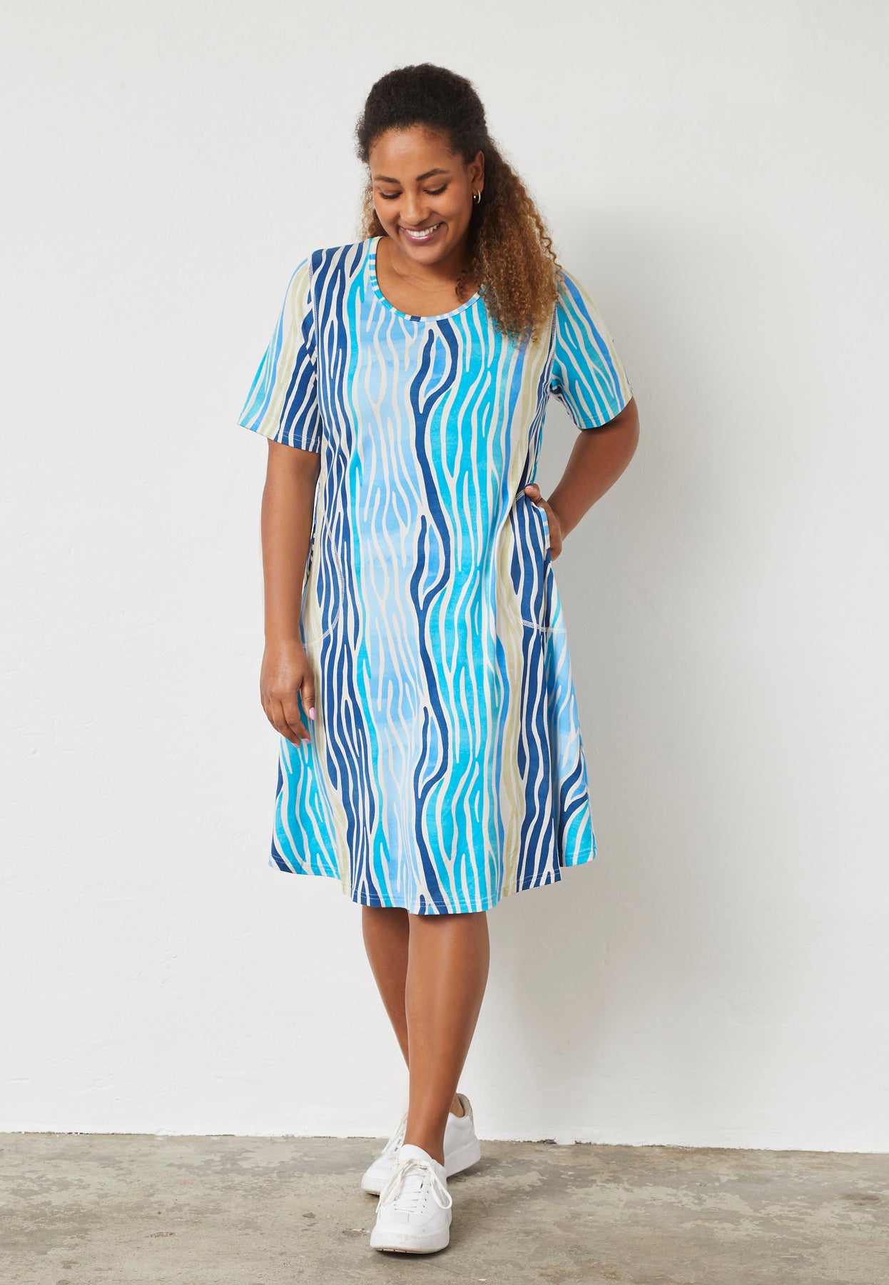 Regular price 749.00 DKK Sale price 524.30 DKK Save 30%This lightweight dress blends comfort with a modern look. Designed in a relaxed A-shape fit, it drapes beautifully and offers an airy feel. The graphic pattern in fresh hues adds a playful touch, while the soft viscose blend ensures all-day comfort.