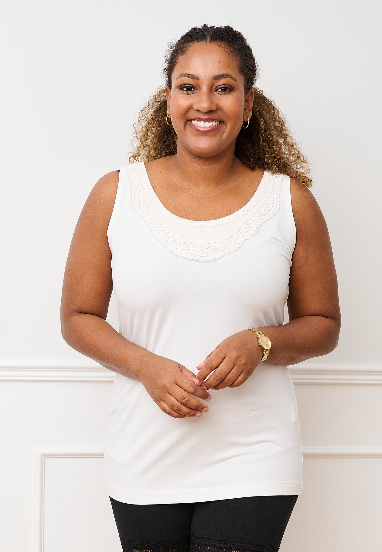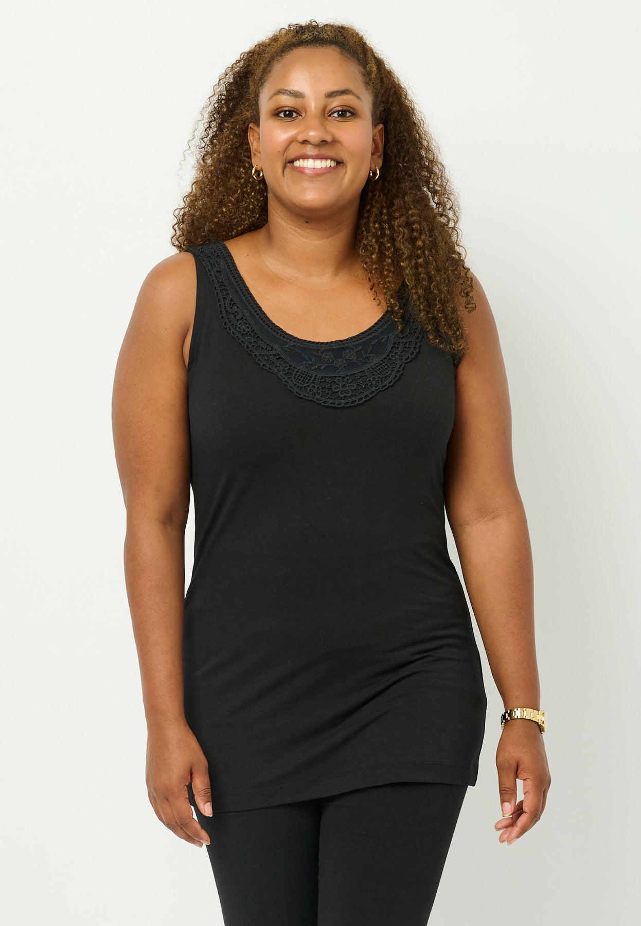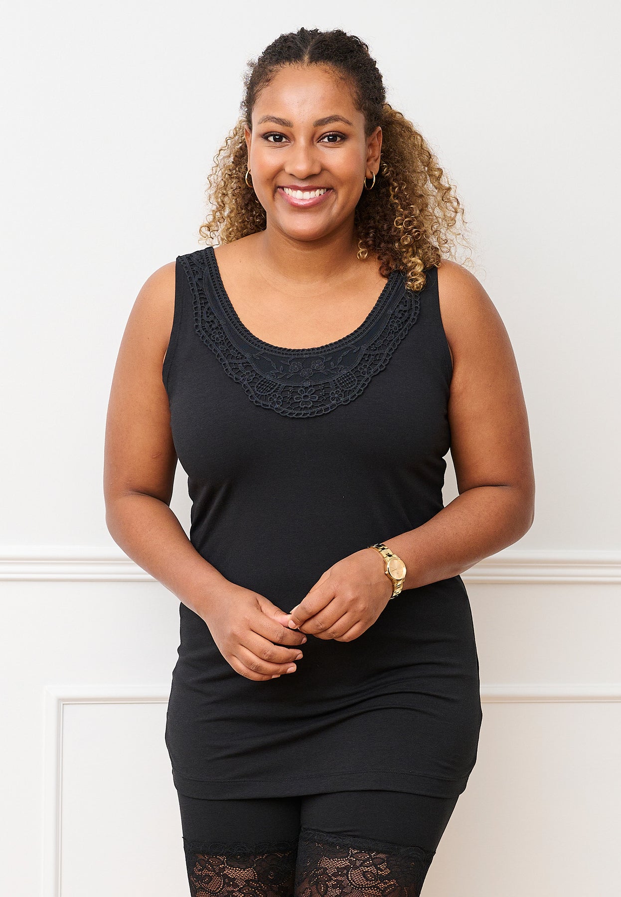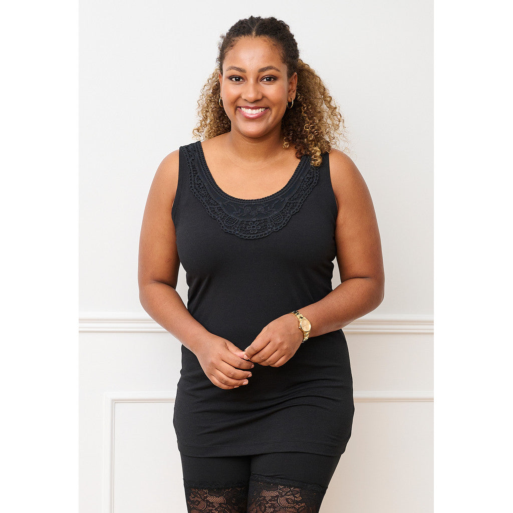 This simple and versatile top from Pont Neuf is a must-have in any wardrobe. Made from a soft and stretchy material, this top ensures maximum comfort and a flattering fit. It features wide straps and a classic round neckline, making it ideal for layering. Perfect for both everyday wear and leisure.