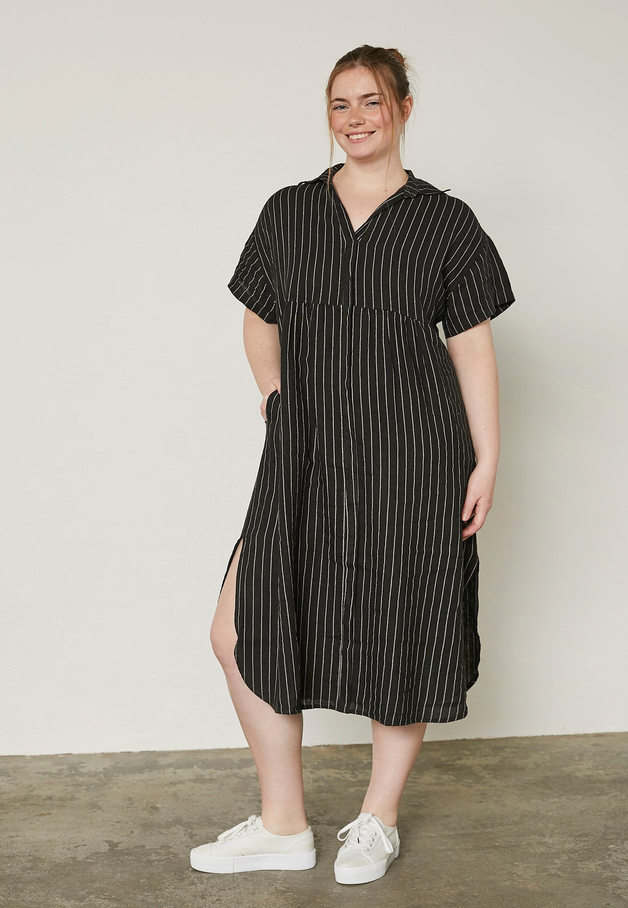 This dress from Pont Neuf is crafted from beautiful linen that creates a light and effortless feel. The subtle texture of the fabric and the refined button detail at the neckline give the dress a simple yet distinctive expression. The A-shape fit offers a roomy silhouette with natural movement and a graceful drape.