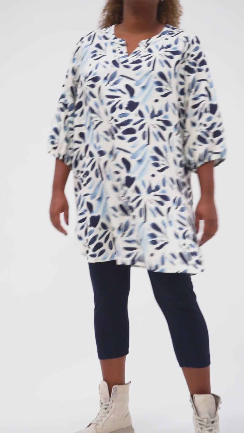 Regular price 799.00 DKKThis straight-fit tunic is the perfect choice for both comfort and style. The lightweight viscose material feels soft against the skin, creating a relaxed and comfortable look. The beautiful floral pattern and three-quarter sleeves add a feminine and modern touch, suitable for both everyday wear and special occasions.